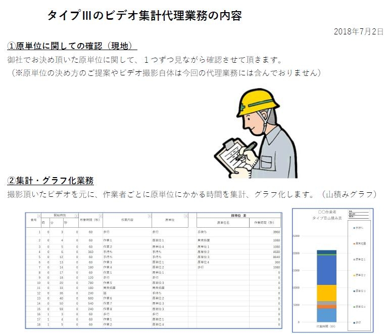 | 作業集計代行サービス(ビデオ観察、タイプⅢ、現状把握) | |