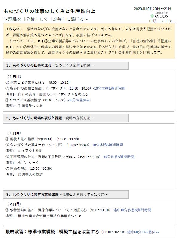 10/19~10/20 『ものづくりの仕事のしくみと生産性向上』 というタイトルで、