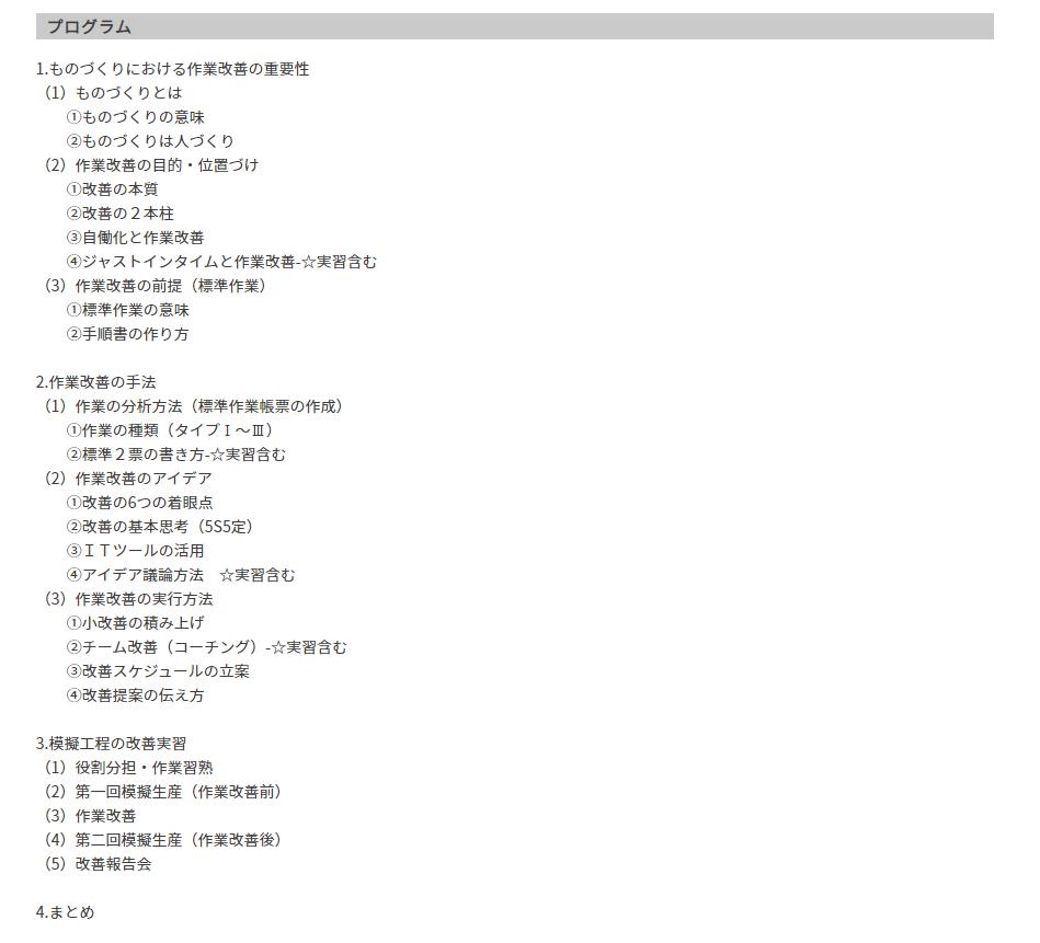 内容としては、製造現場の『作業改善』を主なテーマとしています。