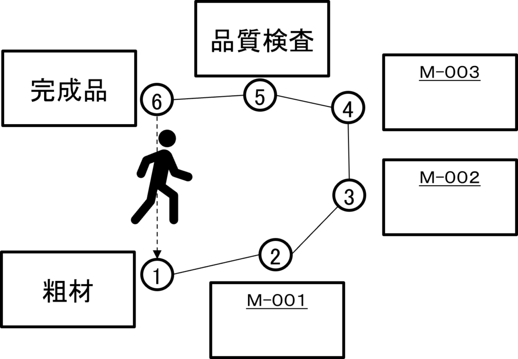 ある一人の作業者が、①~⑥の作業を繰り返します。