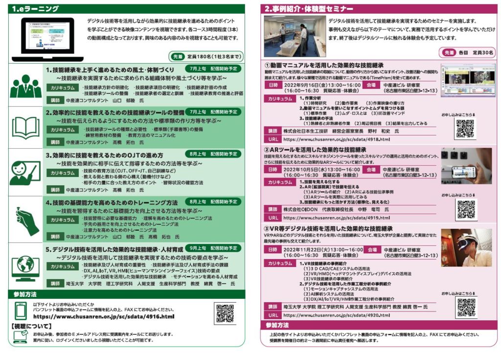 実証事業に参画する企業様には、技能継承のために「eラーニング」「セミナー」「ハンズオン支援」を実施していきます。弊社もセミナー、ハンズオン支援の一部を担当する予定です。