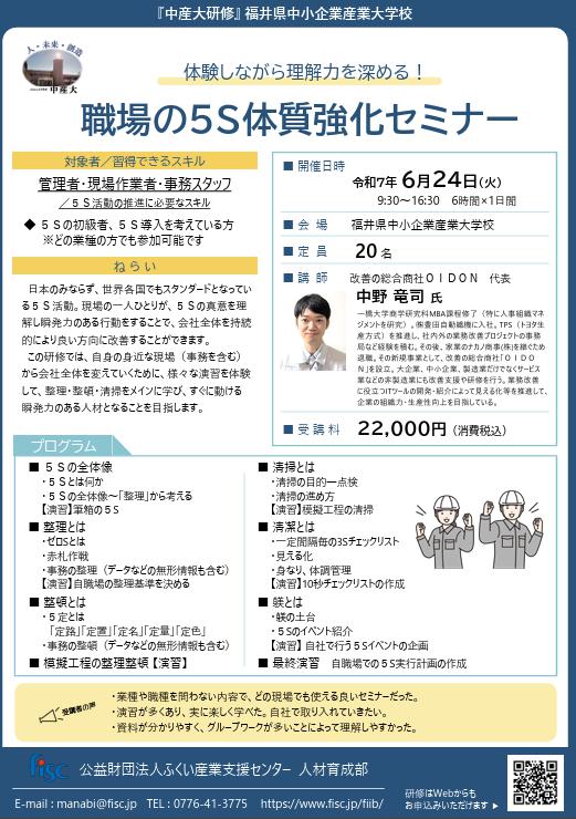 6/26(火) 『職場の5S体質強化セミナー』 というタイトルで、