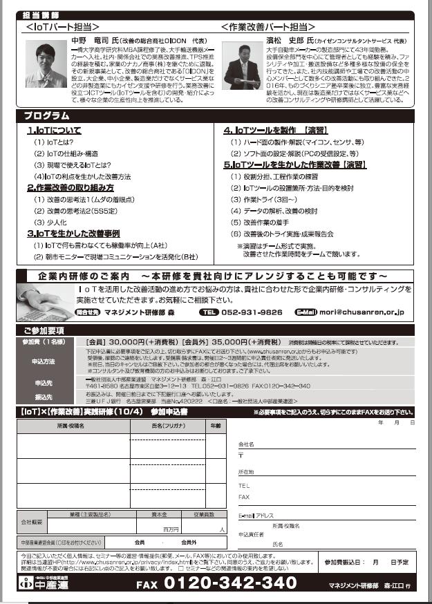 10/4(木) 【IoT】×【作業改善】実践研修 というタイトルで、