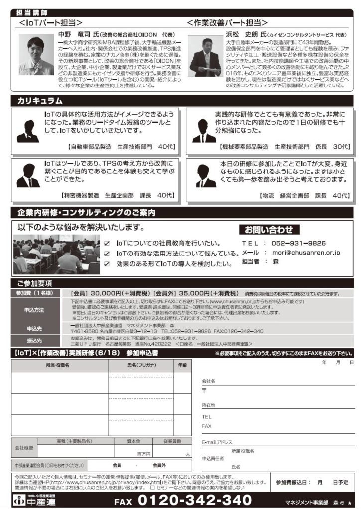 ⇒6/18 第2回 中部産業連盟にてセミナー開催~IoT×作業改善~
