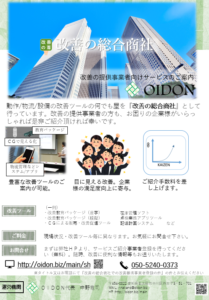動作 /物流 /設備の改善ツール何でも屋を 『 改善の総合商社 』として 行っています。改善の提供事業者方も、お困り企様がらしゃれば是非ご紹介頂け幸いです。